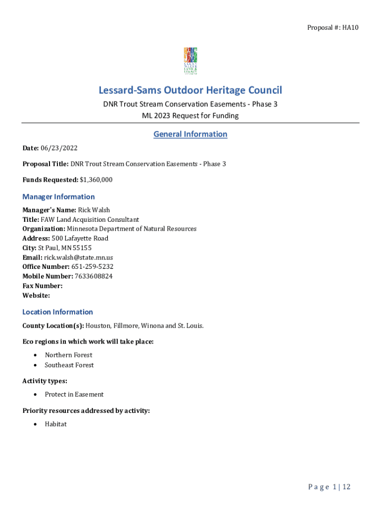 Proposal #: HA10LessardSams Outdoor Heritage Council