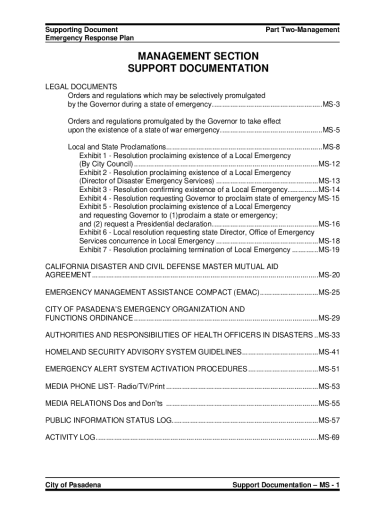 Supporting Document Emergency Response PlanPart TwoManagementMANAGEMENT SECTION SUPPORT DOCUMENTATION LEGAL DOCUMENTS Orders and regulations which may be selectively promulgated by the Governor during