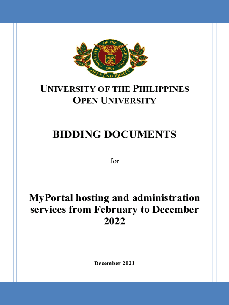 Get the free Bidding Documents - MyPortal hosting and administration services from February to De...