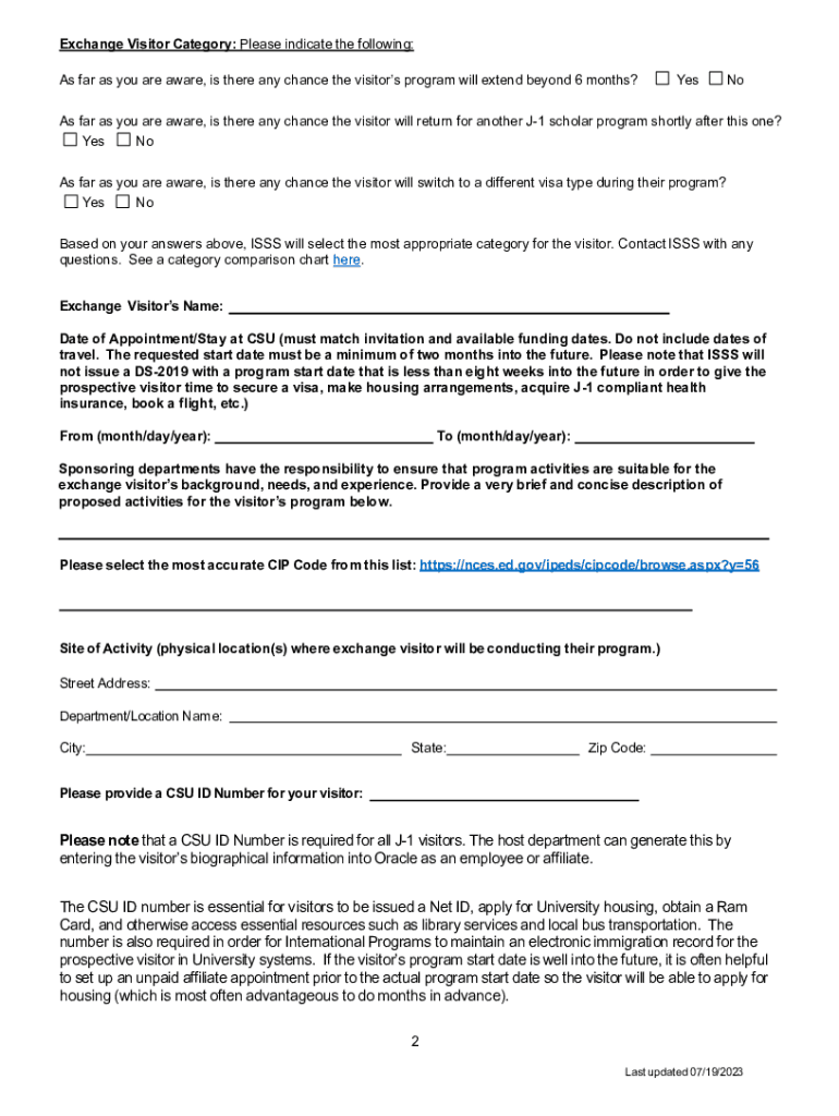 1024 Campus Delivery Fort Collins, CO 805231024 USA (970) 4915917 international.colostate.eduHOST DEPARTMENT INITIAL REQUEST for J1 SCHOLAR Research Scholar, ShortTerm Scholar, Professor or Specialist