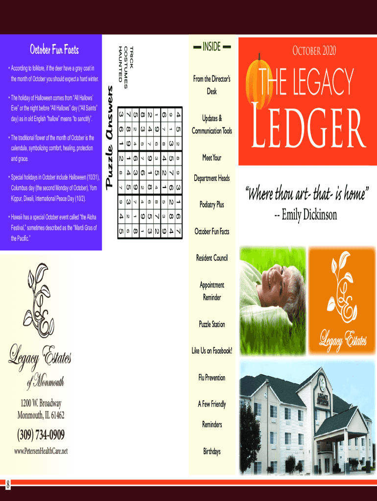 6 71 5 9 6Updates & Communication Tools 8Meet YourLedger4Department Heads 24Podiatry Plus82Puzzle AnswersTHE LEGACY712Sudoku #1 8 5 4 1 2 9 6 3 1 2 6 5 3 7 4 8 9 7 3 4 8 6 1 2 3 1 2 9 4 7 6 4 2 6