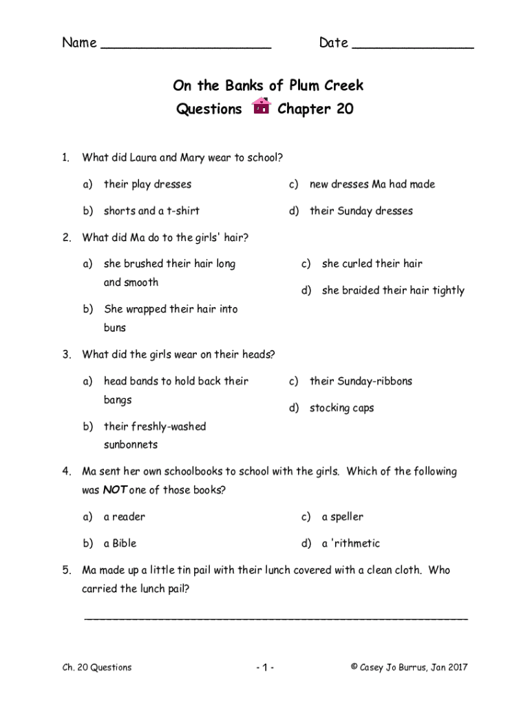 Get the free On the Banks of Plum Creek Questions Chapter 6