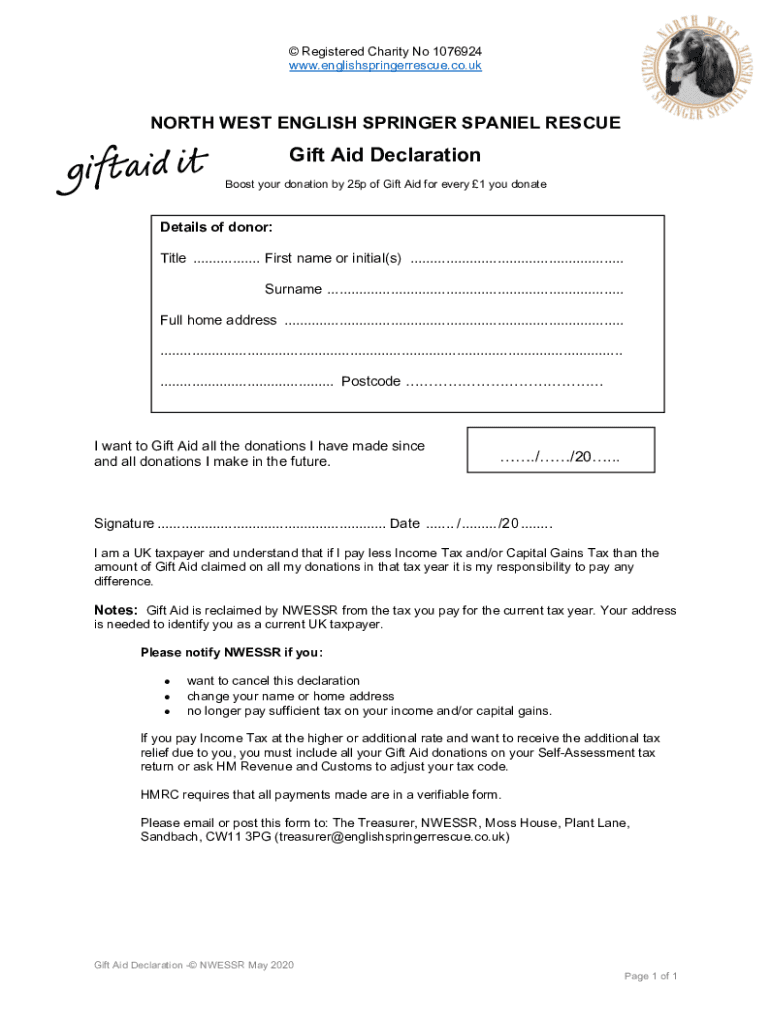 www.englishspringerrescue.co.ukNORTH WEST ENGLISH SPRINGER SPANIEL RESCUEGift Aid Declaration