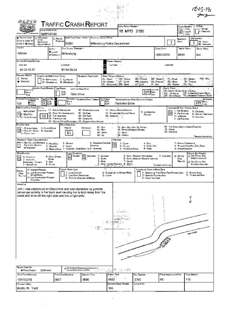 TRAFFIC CRASH Reportorial. REPORT NUMBER\'118 MPD 2180 REPORTING AGeNCYNCIC RE?Oral AGENCY NAME03801 COUNTY\'[] City. Holmes VILLAGE\'Animal. Millersburg Police DepartmentUNKNOWNCAASHD, ue\”CITY,