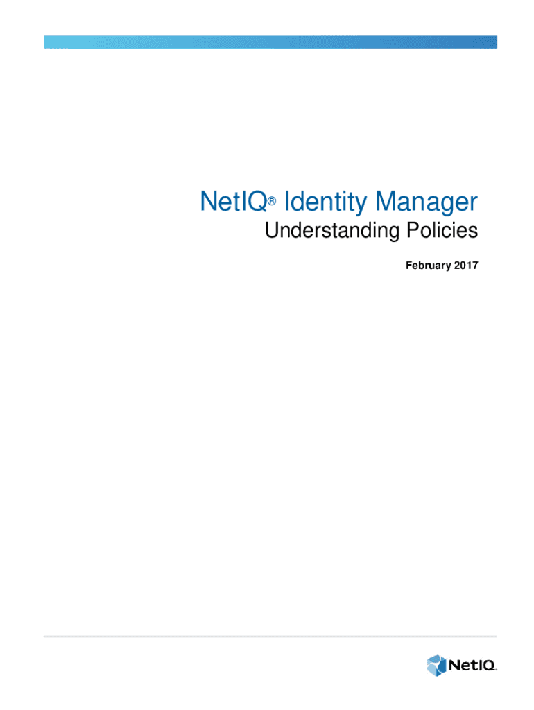 NetIQ Identity Manager Understanding Policies February 2017Legal Notice For information about NetIQ legal notices, disclaimers, warranties, export and other use restrictions, U.S. Government restricted