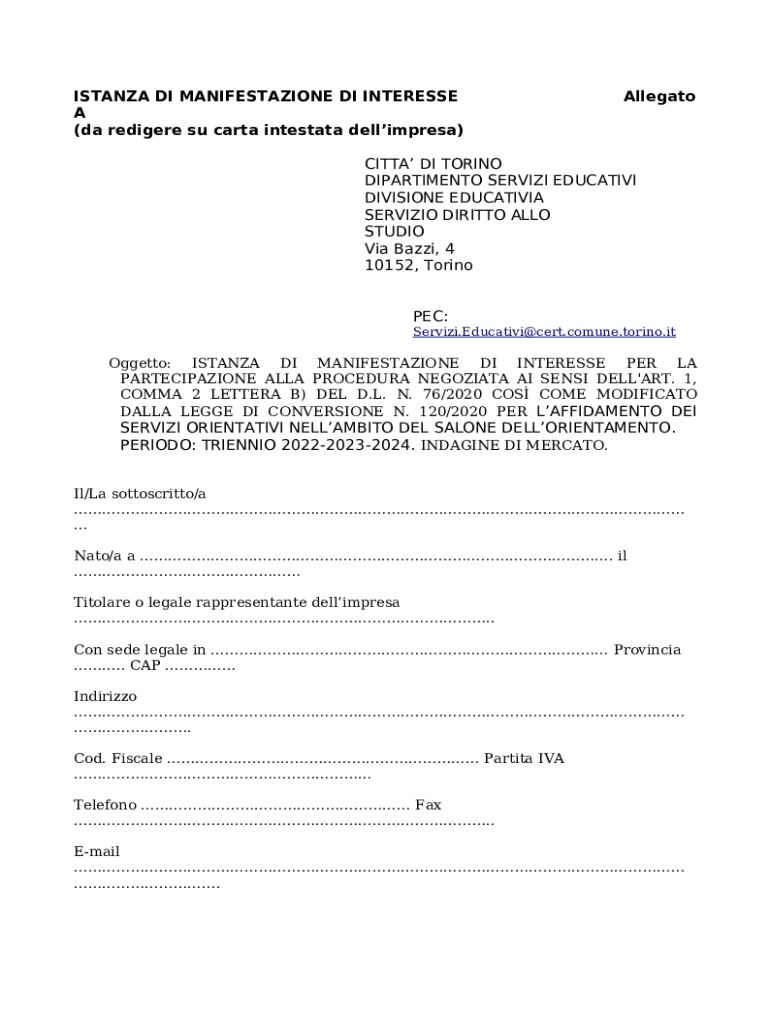 The Bandi, Gare e Manifestazioni di interesse is a fillable form in MS Word extension that should be submitted to the relevant address to provide some info. It has to be filled-out and signed, which can be done manually in hard copy, or by using a particular solution such as PDFfiller. It helps to fill out any PDF or Word document directly from your browser (no software requred), customize it according to your purposes and put a legally-binding e-signature. Right away after completion, the user can send the Bandi, Gare e Manifestazioni di interesse to the relevant recipient, or multiple recipients via email or fax. The template is printable as well because of PDFfiller feature and options offered for printing out adjustment. In both digital and physical appearance, your form will have got organized and professional appearance. You can also save it as the template for further use, without creating a new blank form from scratch. Just edit the ready form.