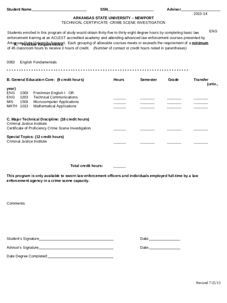 Template Technical Certificate in Crime Scene Investigation - files asun instructions