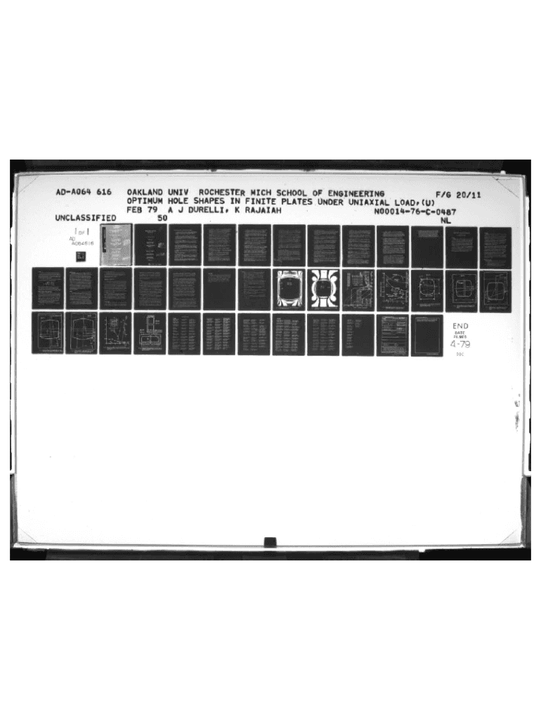 OPTIMUM M HOLE SHAPES IN FINITE PLATES UNDER UNFAIR L LOAD, (U)