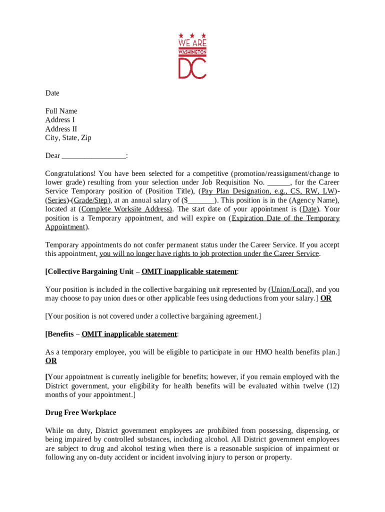 How to fill Notification of Conversion to Career Service Temp Appt word template