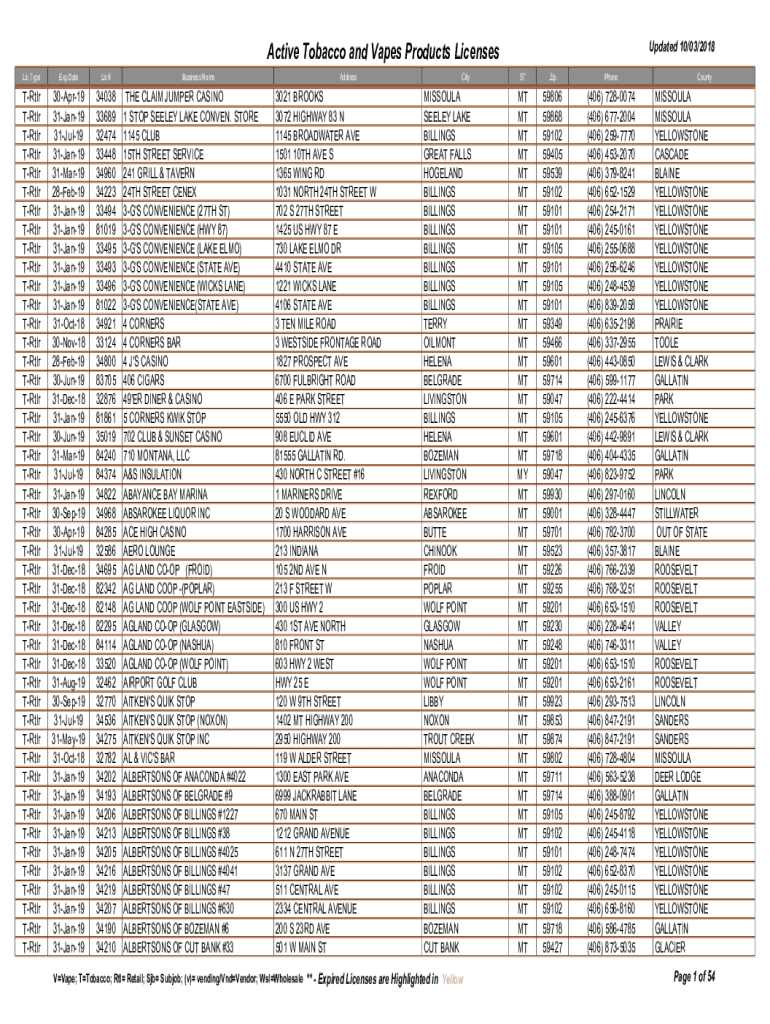 Active Tobacco and Vapes Products Licenses