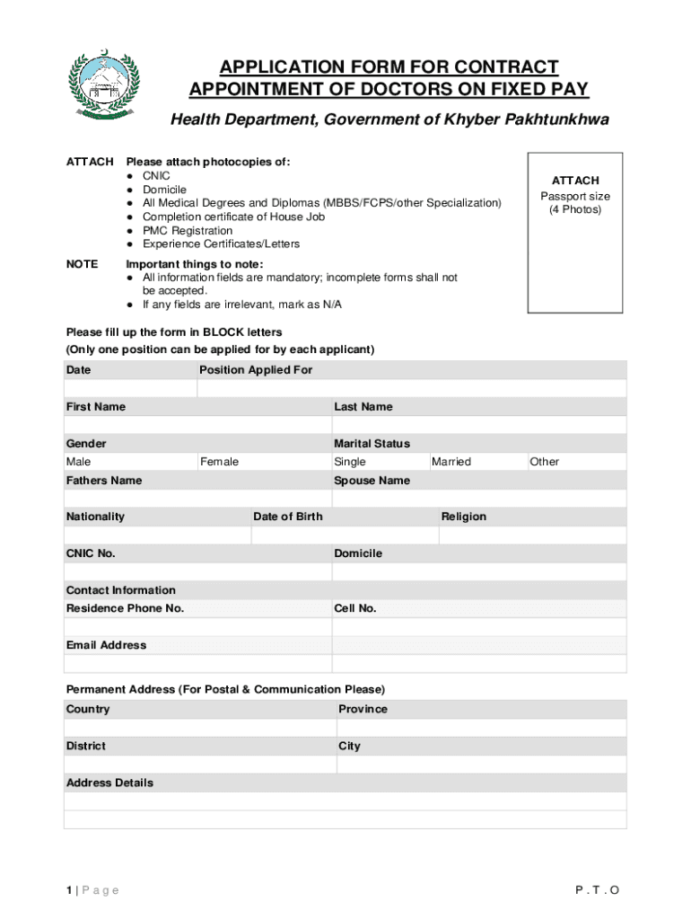 Get the free Application Form For Contract Appointment Of Doctors On ...
