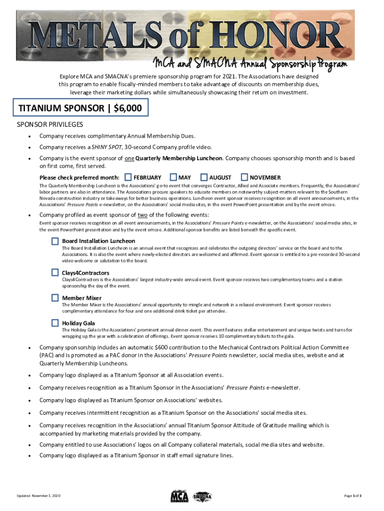 MCA and SMA CNA Annual Sponsorship Program Explore MCA and Saunas premiere sponsorship program for 2021. The Associations have designed this program to enable fiscally minded members to take advantage