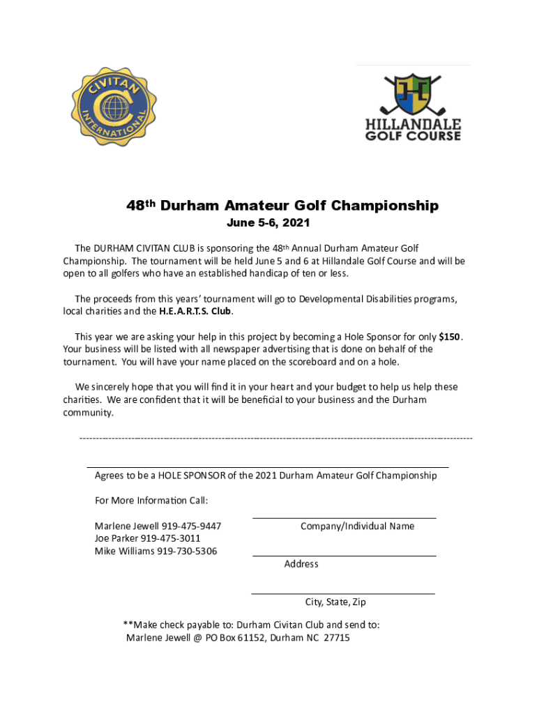 Fill out your durham amateur golf sponsor online with pdfFiller!