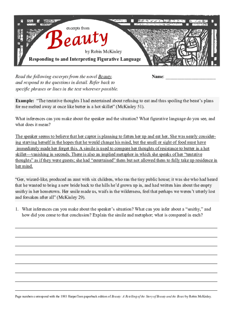 Excerpts from by Robin McKinleyResponding to and Interpreting Figurative Language