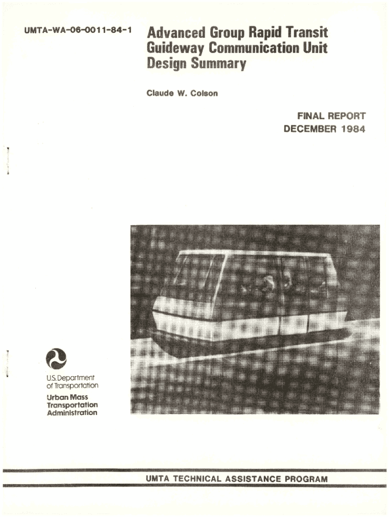 u m ta w a o6 o o ii8 4 iA d v a n c e dG ro u pG u id e w a yC o m m u n ic a tio nD e s ig nR a p idT r a n s it U n itS u m m a ryClaude W. ColsonFINAL REPORT DECEMBER 1984U.S. Department of Transportation
