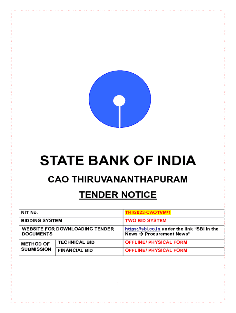 NIT No.THI/2023CAOTVM/1BIDDING SYSTEM BID SYSTEMWEBSITE FOR DOWNLOADING TENDER