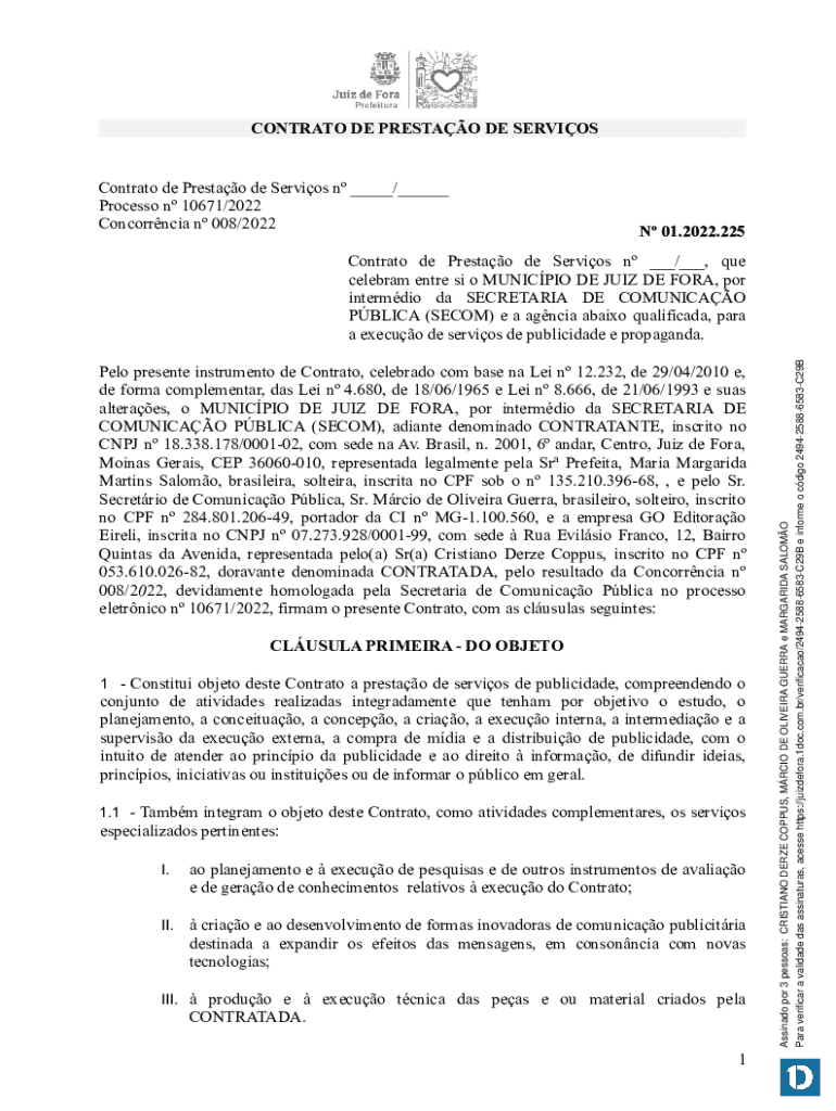 Concordia n 008/2022 N 01.2022.225Pelo present instrument ode Contralto, celebrate com base Na Lei n 12.232,