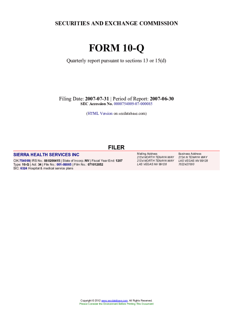 Get the free SIERRA HEALTH SERVICES INC (Form: 10-Q, Filing Date