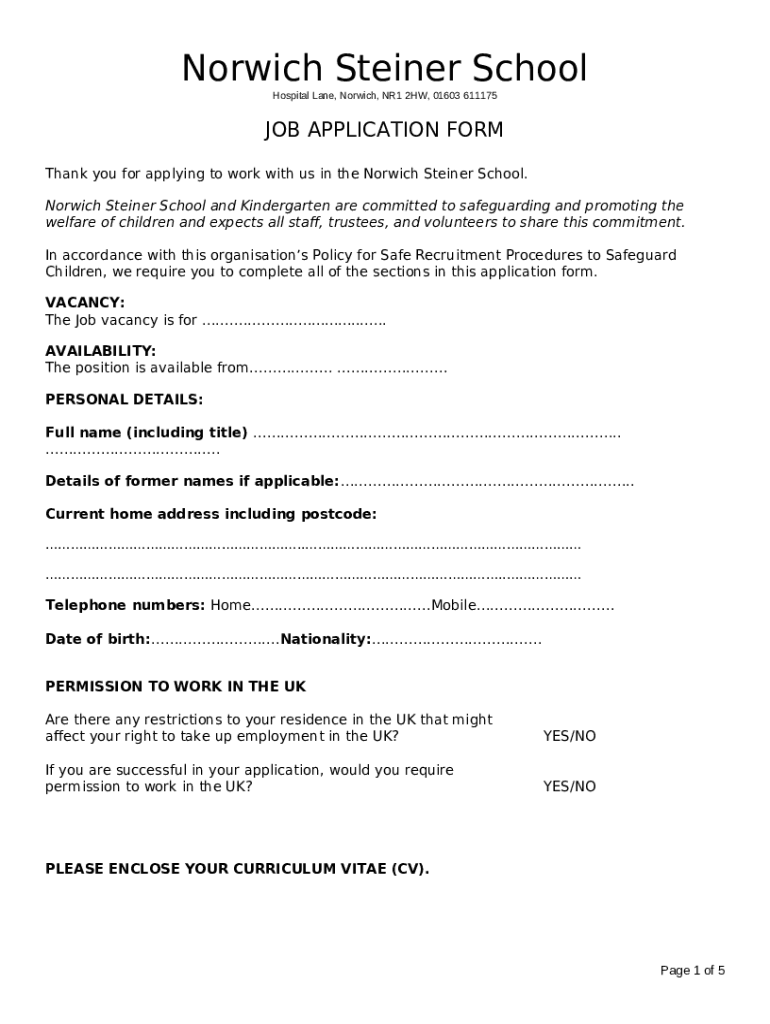 English Teacher job with NORWICH STEINER SCHOOL template instructions