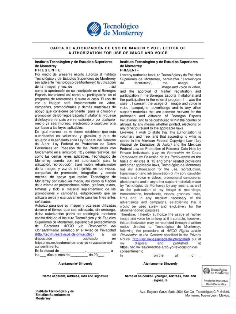 CARTA DE AUTHORIZATION DE USO DE IMAGE Y VOZ / LETTER OF