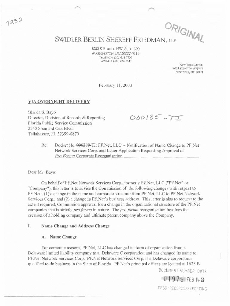 NETWORK, NY 10114February 11,2000VIA OVERNIGHT DELIVER Blanca