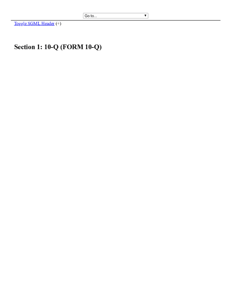 Go to...Toggle SGML Header (+)Section 1: 10Q (FORM 10Q)Table of ContentsUNITED STATES SECURITIES AND EXCHANGE COMMISSION Washington, D.C. 20549FORM 10Q (Mark One)QUARTERLY REPORT PURSUANT TO SECTION