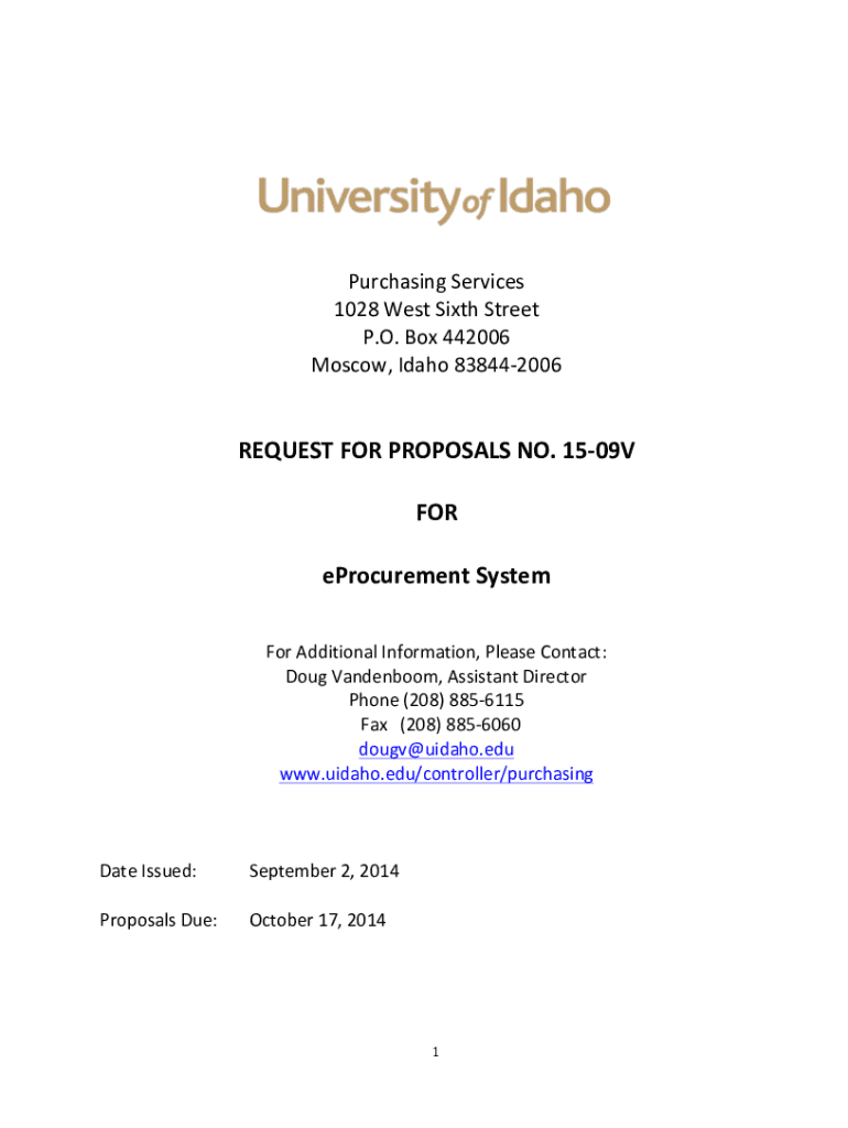 Get the free REQUEST FOR PROPOSALS NO. 15-09V FOR eProcurement ...