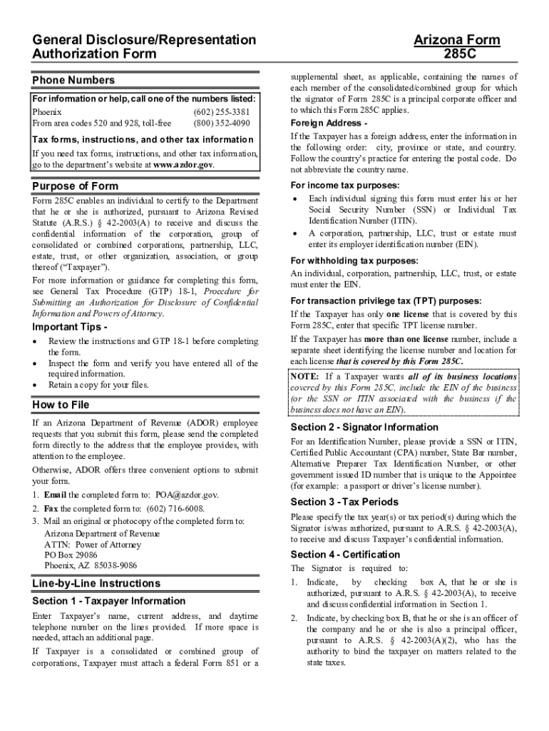 General Disclosure/Representation Authorization Form Phone Numbers For information or help, call one of the numbers listed: Phoenix (602) 2553381 From area codes 520 and 928, tollfree (800) 3524090