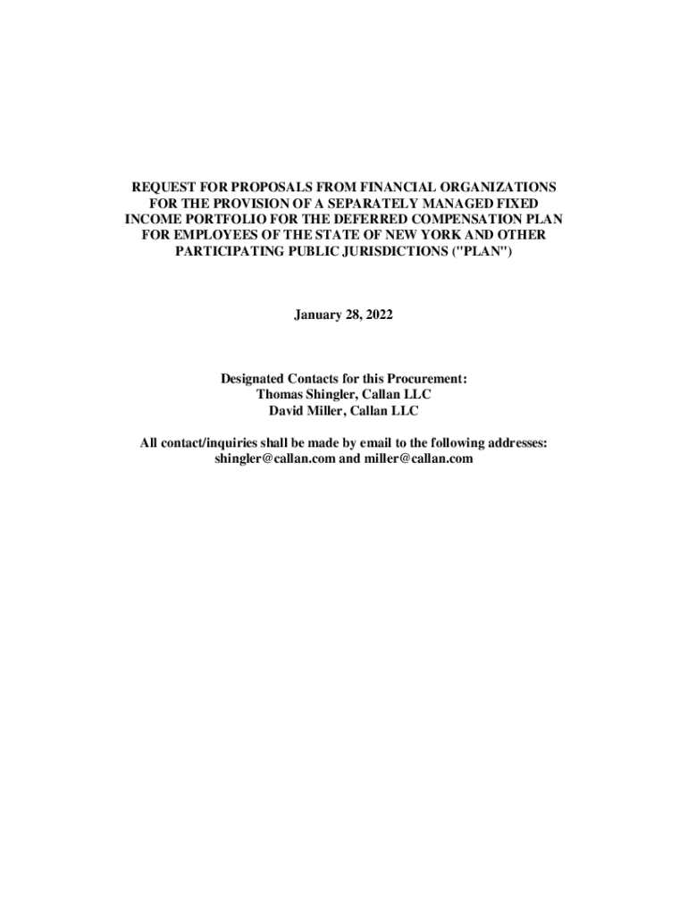 REQUEST FOR PROPOSALS FROM FINANCIAL ORGANIZATIONS