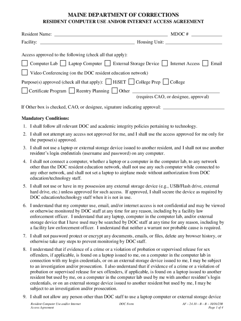 Get the free RESIDENT COMPUTER USE AND/OR INTERNET ACCESS AGREEMENT