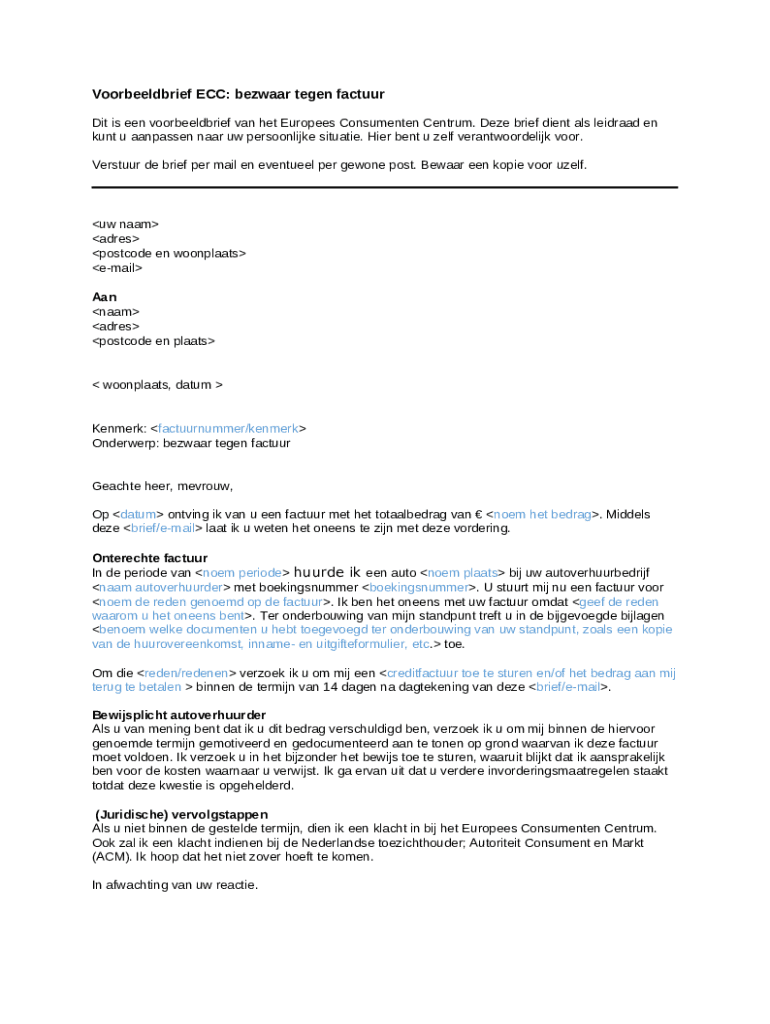 How should you fill out the Bezwaar tegen sommering na parkeerboete Pula Parking template