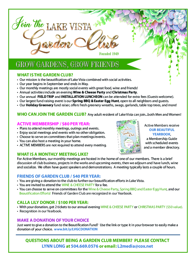 Fill out your garden club membership form online with pdfFiller!