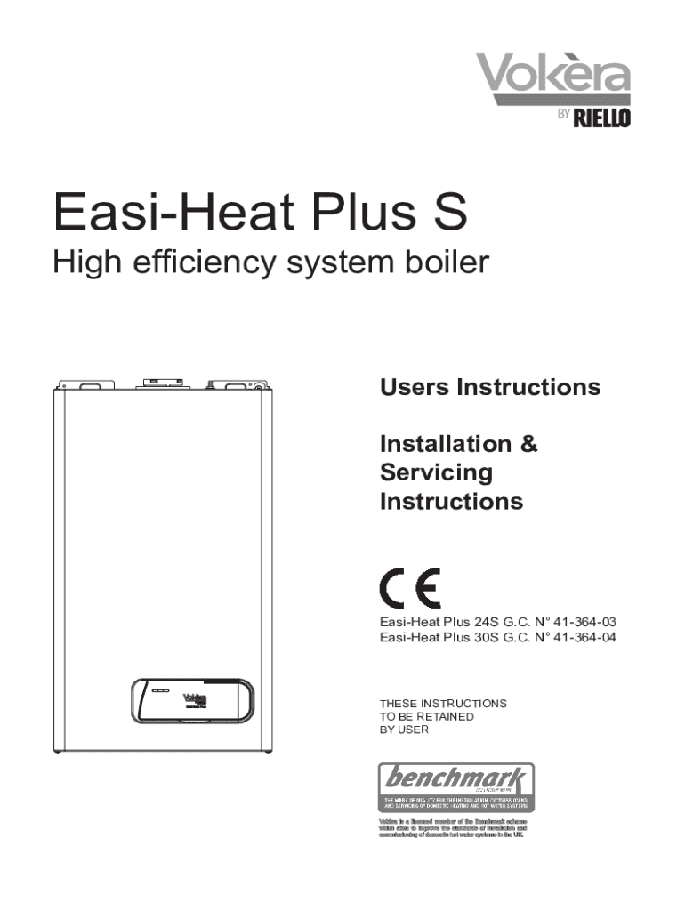 EasiHeat Plus SHigh efficiency system boilerUsers Instructions Installation & Servicing InstructionsEasiHeat Plus 24S G.C. N 4136403 EasiHeat Plus 30S G.C. N 4136404THESE INSTRUCTIONS TO BE RETAINED