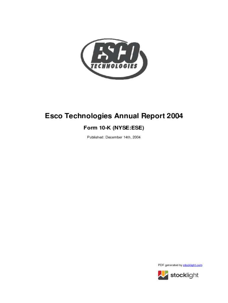 Get the free ESCO TECHNOLOGIES INC Annual Report (Form10) ...