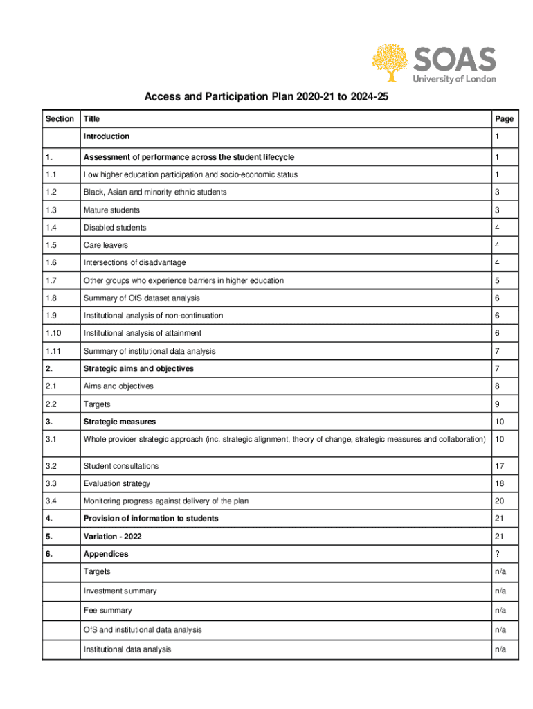 Get the free Access and Participation Plan 202122 to 202425
