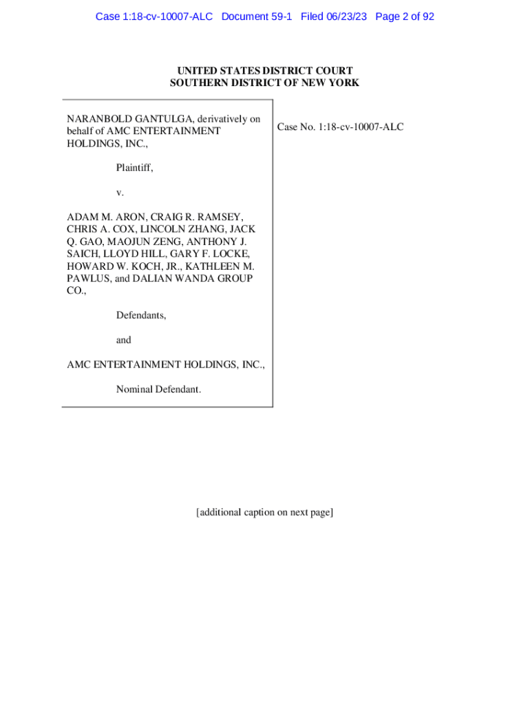 Case 1:18cv10007ALC Document 591 Filed 06/23/23 Page 2 of 92UNITED STATES DISTRICT COURT SOUTHERN DISTRICT OF NEW YORK NARANBOLD GANTULGA, derivatively on behalf of AMC ENTERTAINMENT HOLDINGS, INC.,Case