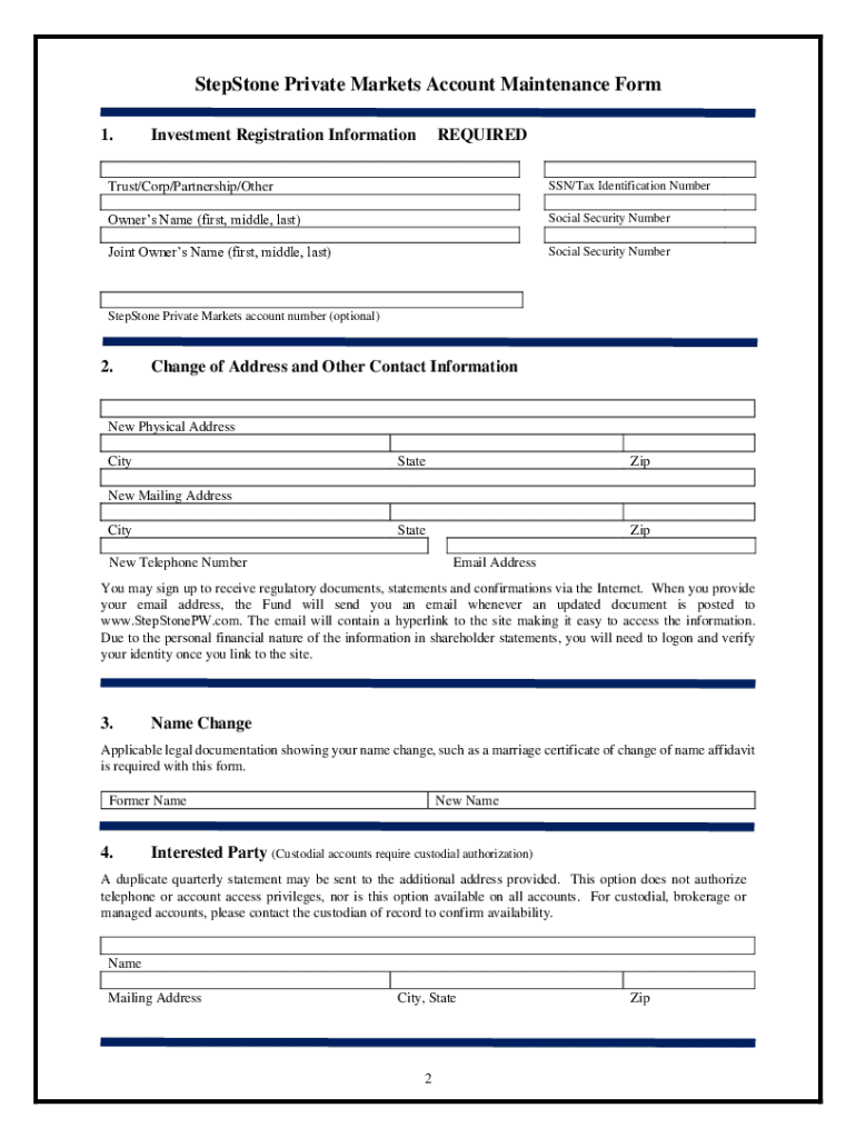 StepStone Private Markets Account Maintenance Form for U.S. Investors RETURN TO Overnight Address: StepStone Private Markets Attn: UMB Fund Services 235 W. Galena Street Milwaukee, WI 53212U. S. Mailing