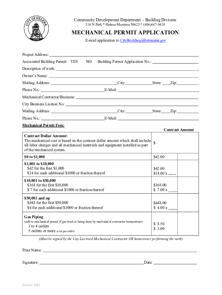 316 N Park * Helena Montana 59623 * (406)4478438MECHANICAL PERMIT APPLICATION