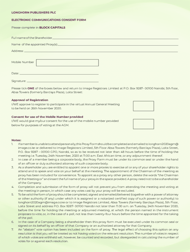 Name of the appointed Proxy(s):___Address: ___Mobile Numerate: ___