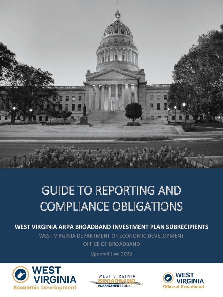 GUIDE TO REPORTING AND COMPLIANCE OBLIGATIONS WEST VIRGINIA ARPA BROADBAND INVESTMENT PLAN RECIPIENTS WEST VIRGINIA DEPARTMENT OF ECONOMIC DEVELOPMENT OFFICE OF BROADBAND Updated June 2023Table of