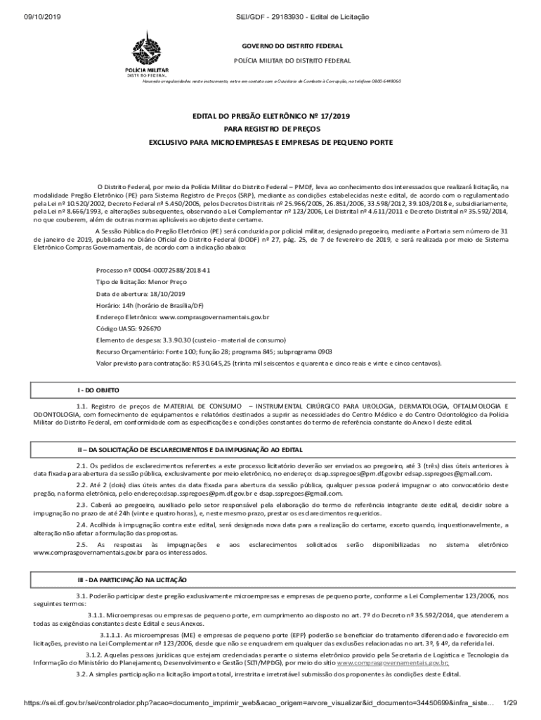 09/10/2019SEI/GDF 29183930 Edital de LicitaoGOVERNO DO DISTRITO FEDERAL