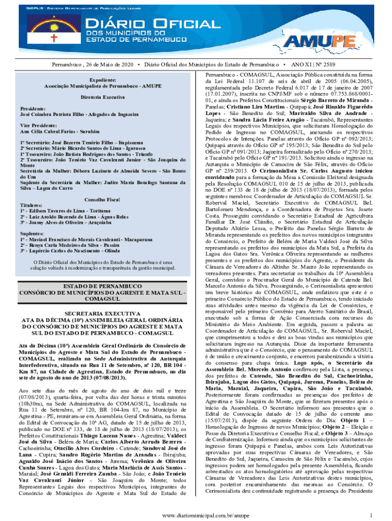Pernambuco, 26 de Mai ode 2020 Dario Official dos Municipal do Est ado de Pernambuco ANO XI | N 2589