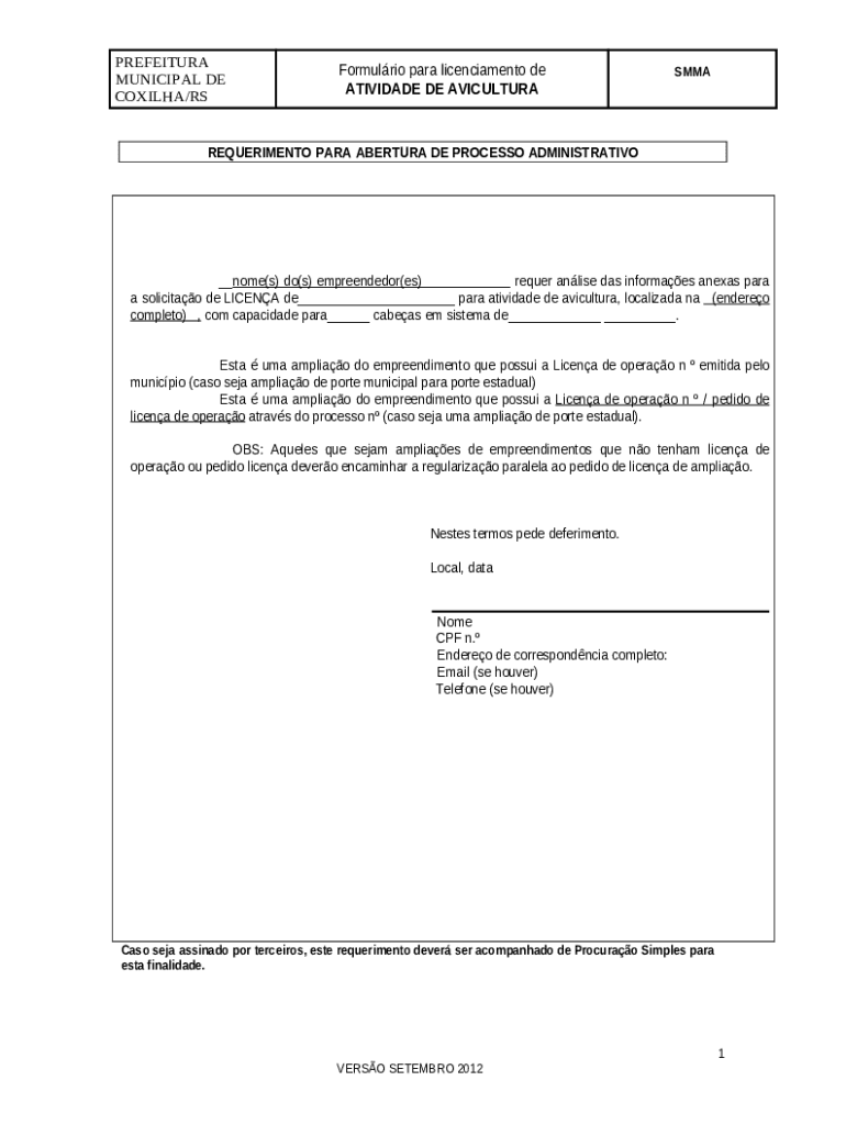Instructions for the form Abrir arquivo - Prefeitura de Coxilha