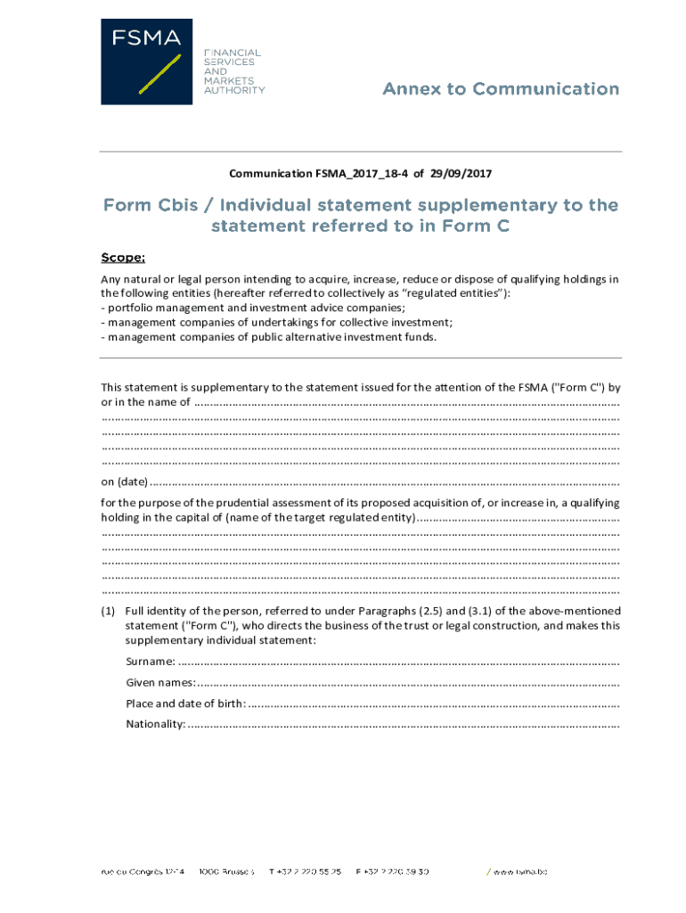 Get the free Form Cbis / Individual statement supplementary to the statement referred to in Form ...