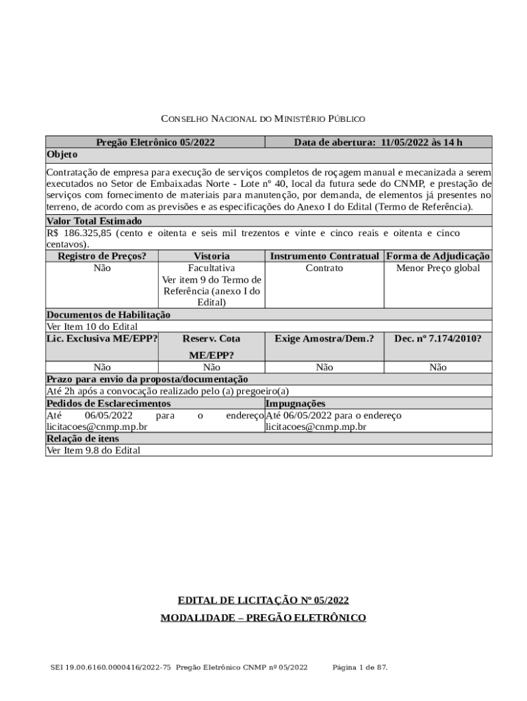 The 325,85 (cento e oitenta e seis mil trezentos e vinte e cinco reais e oitenta e cinco centavos) is a writable document required to be submitted to the required address to provide specific info. It must be completed and signed, which is possible manually in hard copy, or by using a certain software such as PDFfiller. It allows to complete any PDF or Word document directly in your browser, customize it according to your purposes and put a legally-binding e-signature. Once after completion, you can easily send the 325,85 (cento e oitenta e seis mil trezentos e vinte e cinco reais e oitenta e cinco centavos) to the appropriate receiver, or multiple recipients via email or fax. The blank is printable too because of PDFfiller feature and options proposed for printing out adjustment. In both digital and in hard copy, your form should have a neat and professional appearance. You can also save it as the template for later, without creating a new file from scratch. All that needed is to customize the ready template.