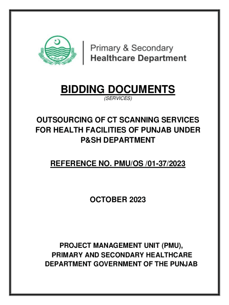 BIDDING DOCUMENTS (SERVICES)OUTSOURCING OF CT SCANNING SERVICES FOR HEALTH FACILITIES OF PUNJAB UNDER P&SH DEPARTMENT REFERENCE NO. PMU/OS /0137/2023OCTOBER 2023PROJECT MANAGEMENT UNIT (PMU), PRIMARY