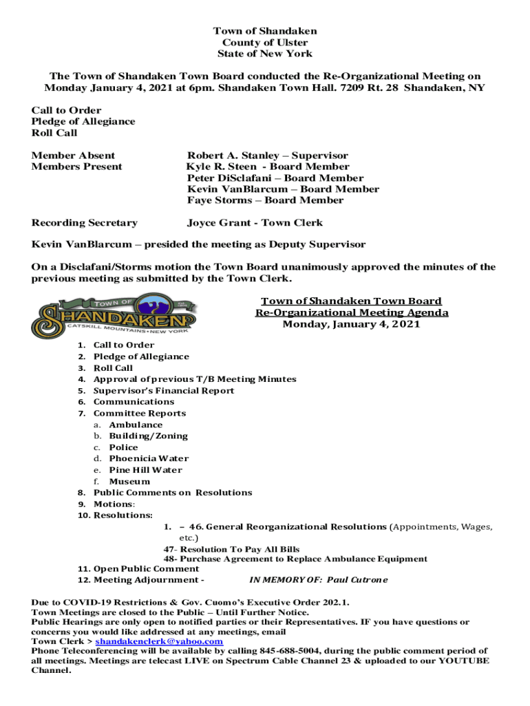 Monday, January 4, 2021, at 6pm. Shaken Town Hall. 7209 Rt. 28 Shaken, NY
