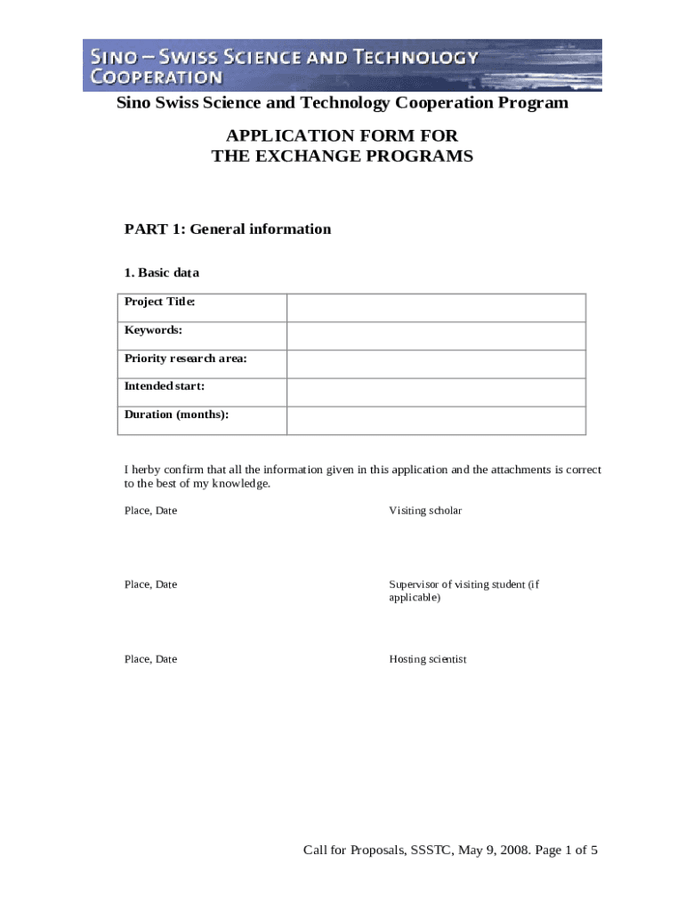 Template Sino Swiss Science and Technology Cooperation Program instructions
