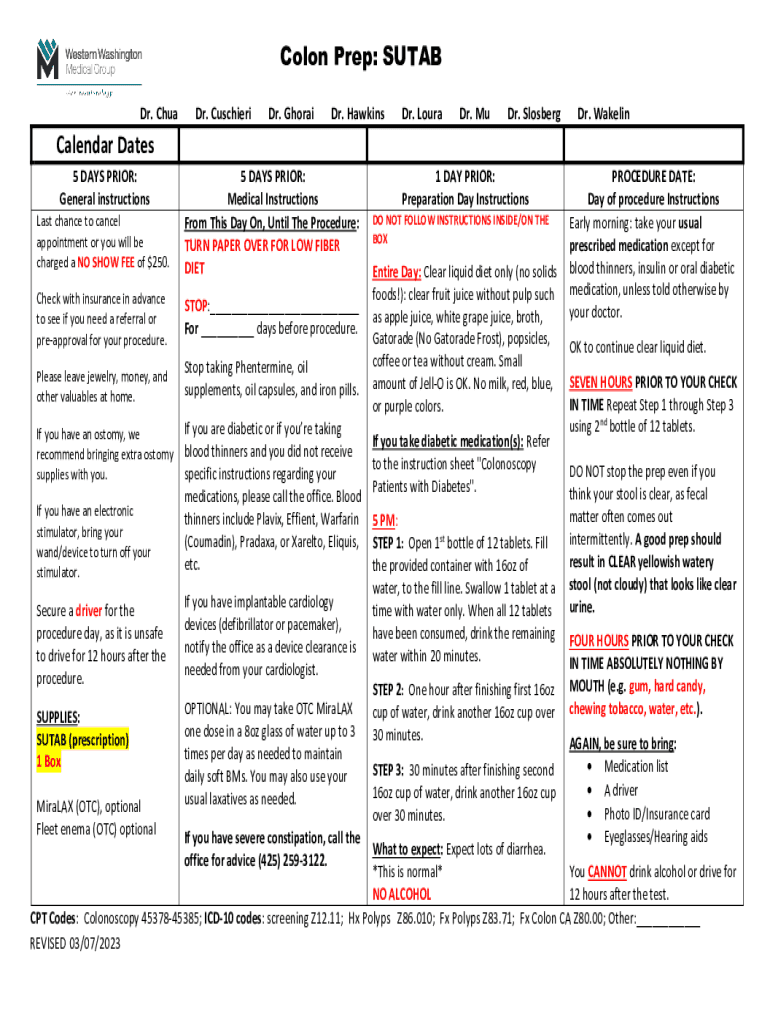 Fill out your colon prep sutab calendar online with pdfFiller!