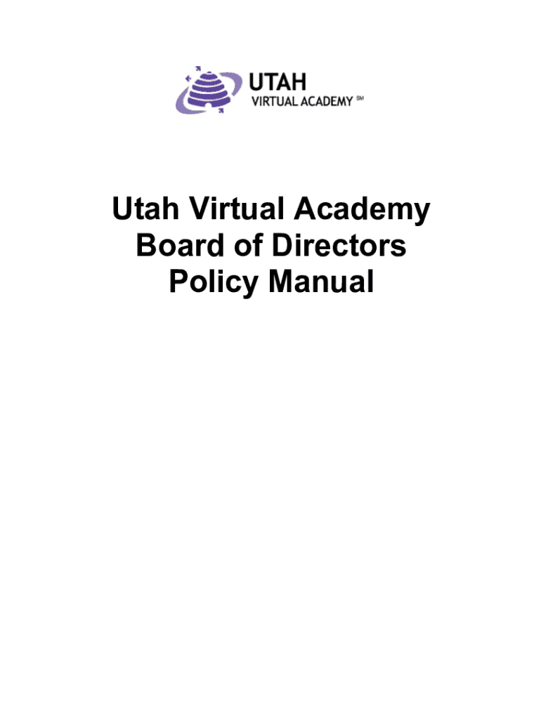 Utah Virtual Academy Board of Directors Policy Manageable OF CONTENTS Administration of Medication Policy ............................................................................ 4 Arrest Reporting